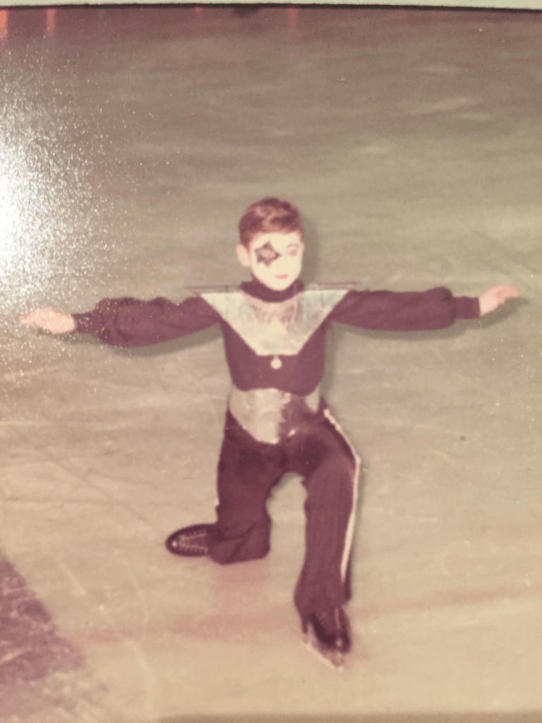 That’s why I began skating at nine years old. Going to the rink for practice at 5:30am before school started. Back to the rink after school. Here’s a picture of me from an ice show–apparently the rock band KISS was all the rage then: